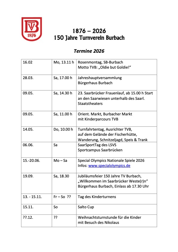 Kontakt: vorstand(at)tv-burbach.de oder 0160 4379102